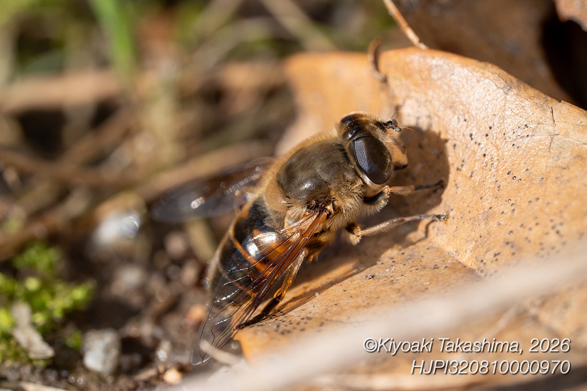 9時過ぎ、庭に一匹のハナアブが降り立つのが見えました。この春初めてのことです。
