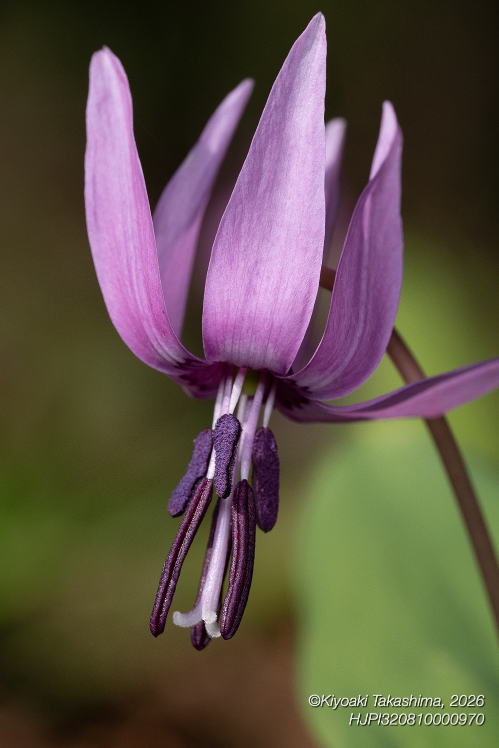 カタクリの雄しべは二段になっているのですね。もう何十年も見ていた花なのに、今更気づきました。そして雄しべの裂開のタイミングがズレていることが、この写真からも分かります。
