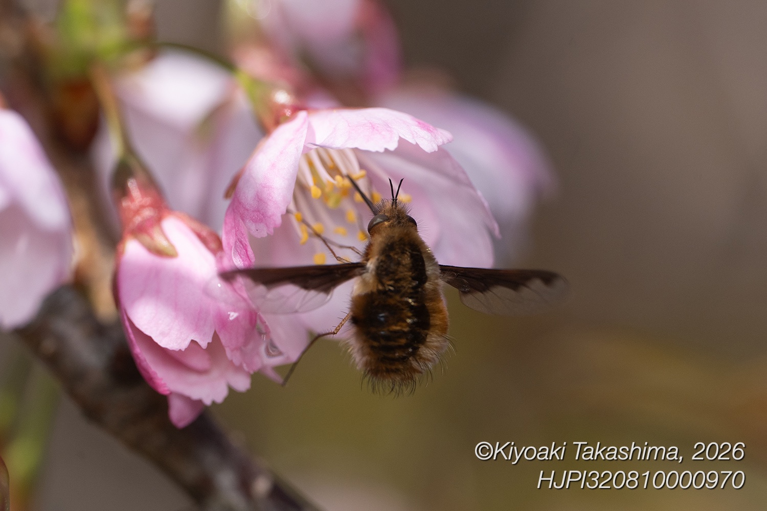 尾根道に植えられたサクラにビロードツリアブ。時々、花から少し離れた空間にホバリングしていました。α9Ⅲとマクロ100mmGMのAFで、いとも簡単に追尾してくれるので、またまた驚いてしまいました。楽しいです・・・アブがある距離からは近づけさせてくれないので、寄る事ができませんでしたが。