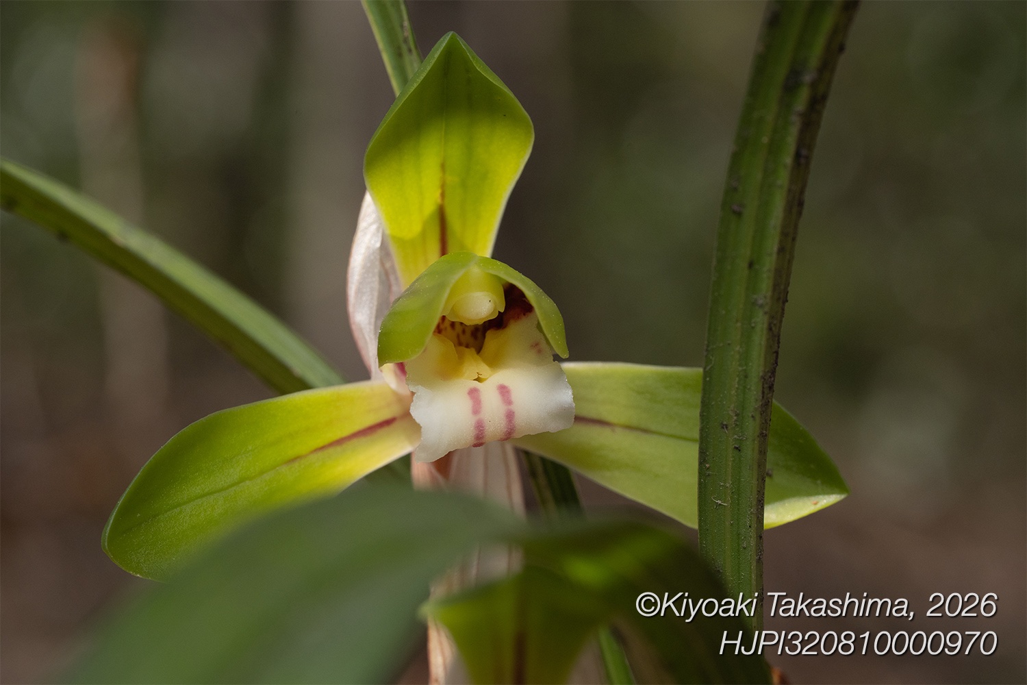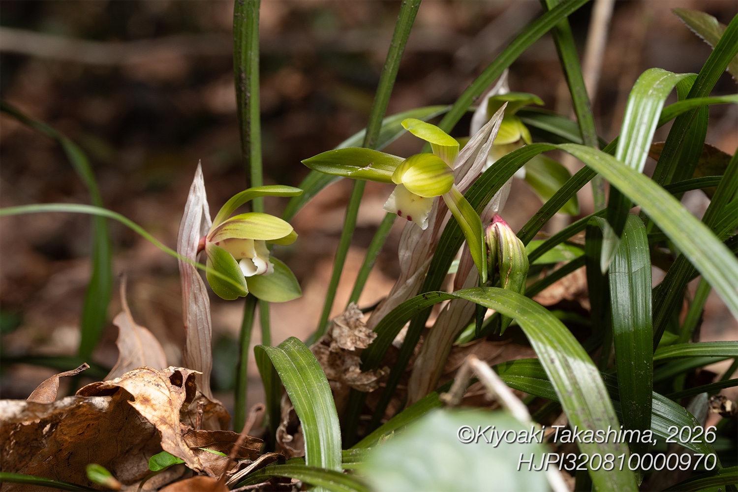 ちょうどギフチョウの頃、林床にひっそり咲く野生のランです。すごく魅力的な花をつけますが気づきにくく、座り込んで何か撮影したりしていて、ふと眼があって驚くことが多いです。なんだいたのか!って感じです。