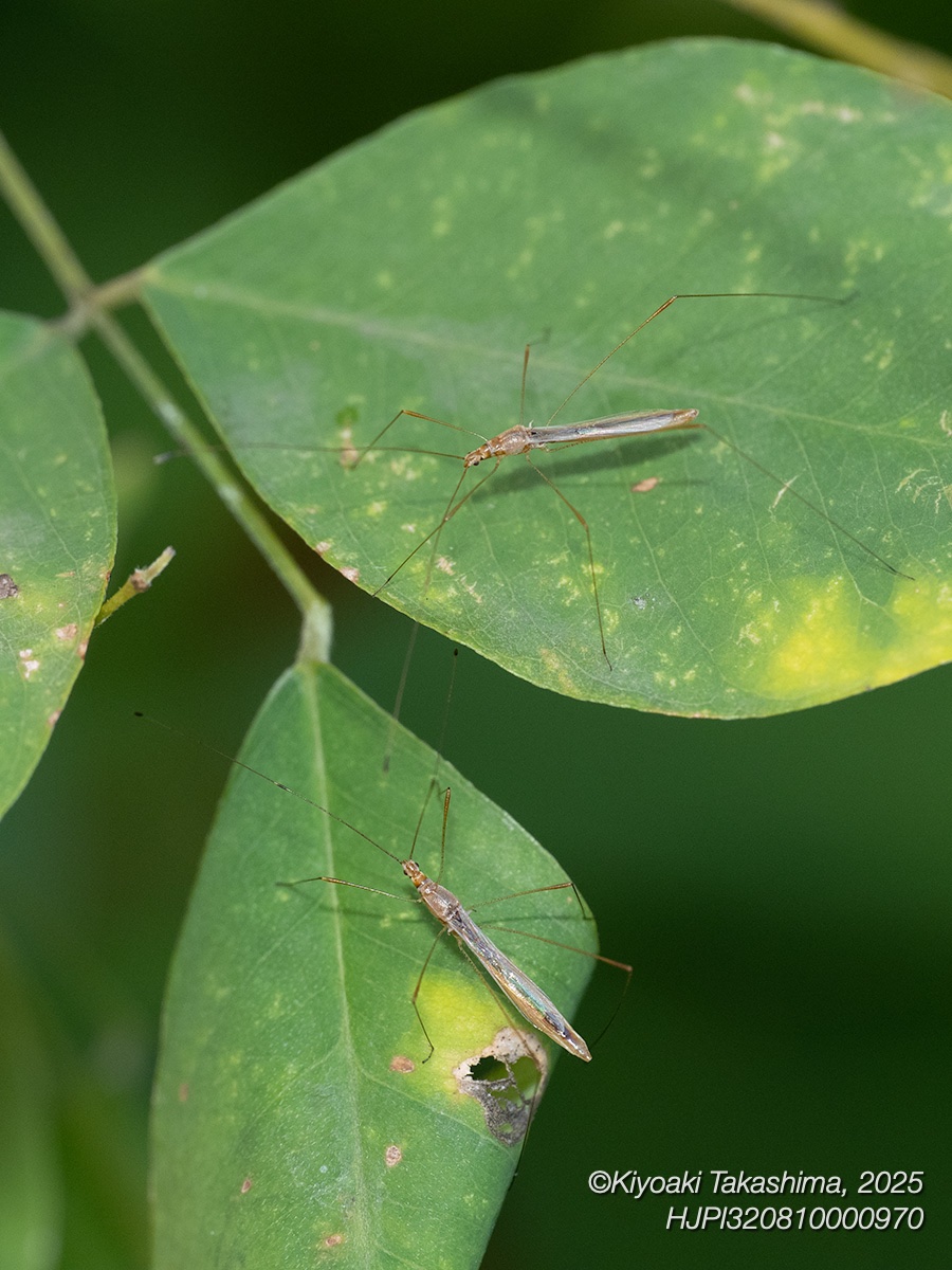 気がついたら庭のハギにイトカメムシがたくさんついていました。ホスト植物にハギはないようですが、アブラムシがたくさんついているので、葉に落ちた甘露をなめていたり、もしかしたらアブラムシを捕食しているのかも知れません。