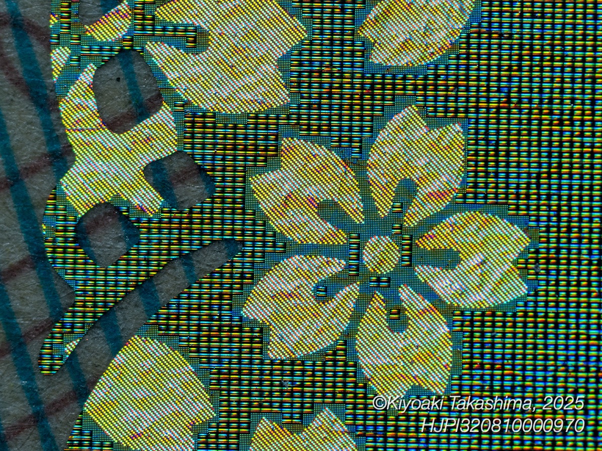 OM90mmマクロ+2倍テレコンで1000円札の3Dホログラムの一部を切り取ってみました。
