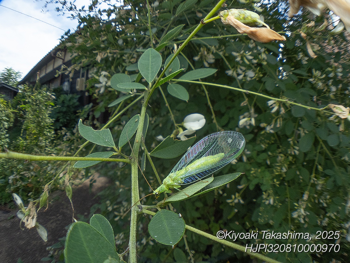 このクサカゲロウはいいお腹をしています。産卵してくれないかな・・・